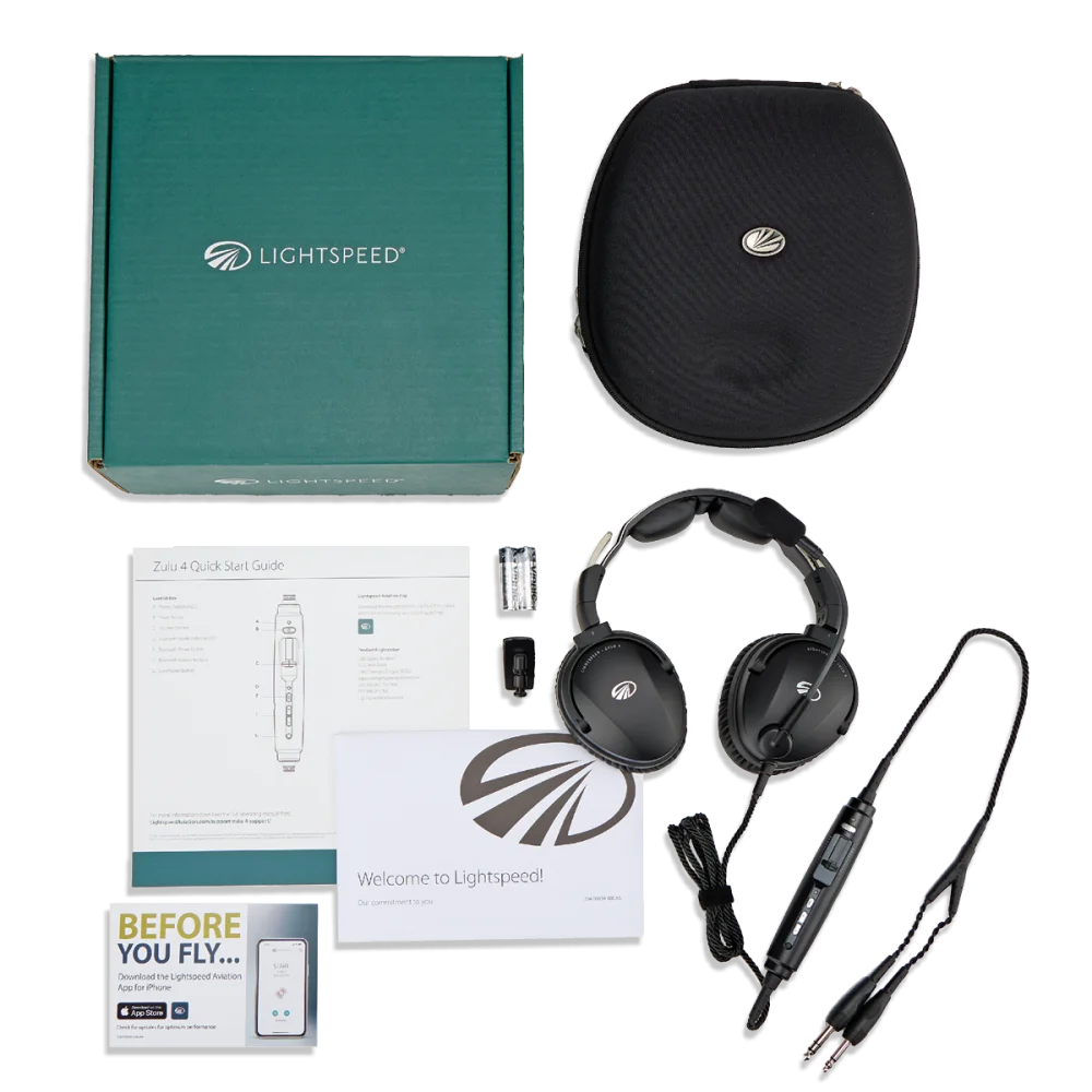 Zulu 4 keeps you going. Connect to two devices simultaneously with dual Bluetooth. Adjust the microphone position precisely to your needs with the extended boom and top-cord design. Stay powered under all circumstances thanks to panel power with AA battery backup. The headset is also fully compatible with the free Lightspeed Aviation iOS app, allowing easy in-flight recording of communications.